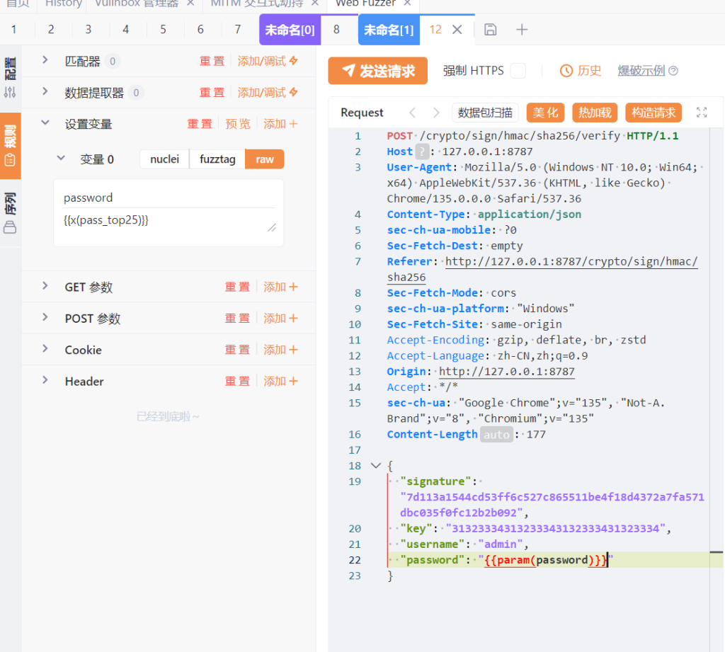 因为前端进行了签名验算,如果在日常渗透中,对登入框没有特别好的绕过方式,可以尝试爆破,但是前端的算法签名会影响爆破方式的可行性