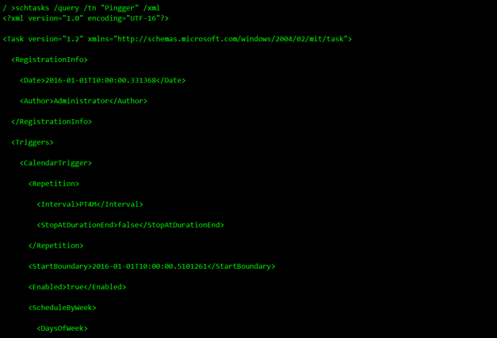 schtasks /query /tn "Pingger" /xml