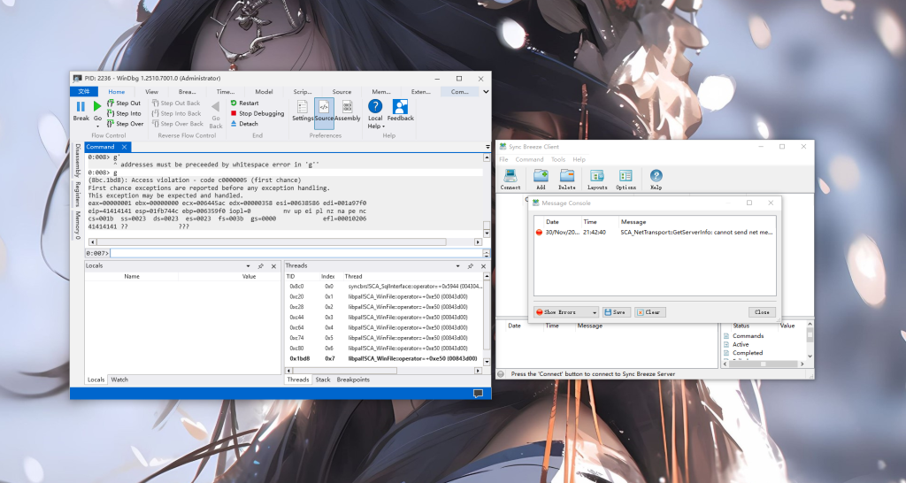 重新启动程序,运行脚本进行坏字符检测,防止shellcode出现错误