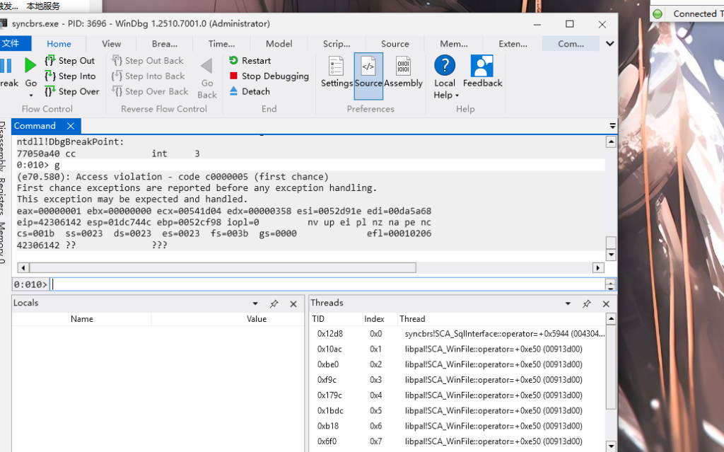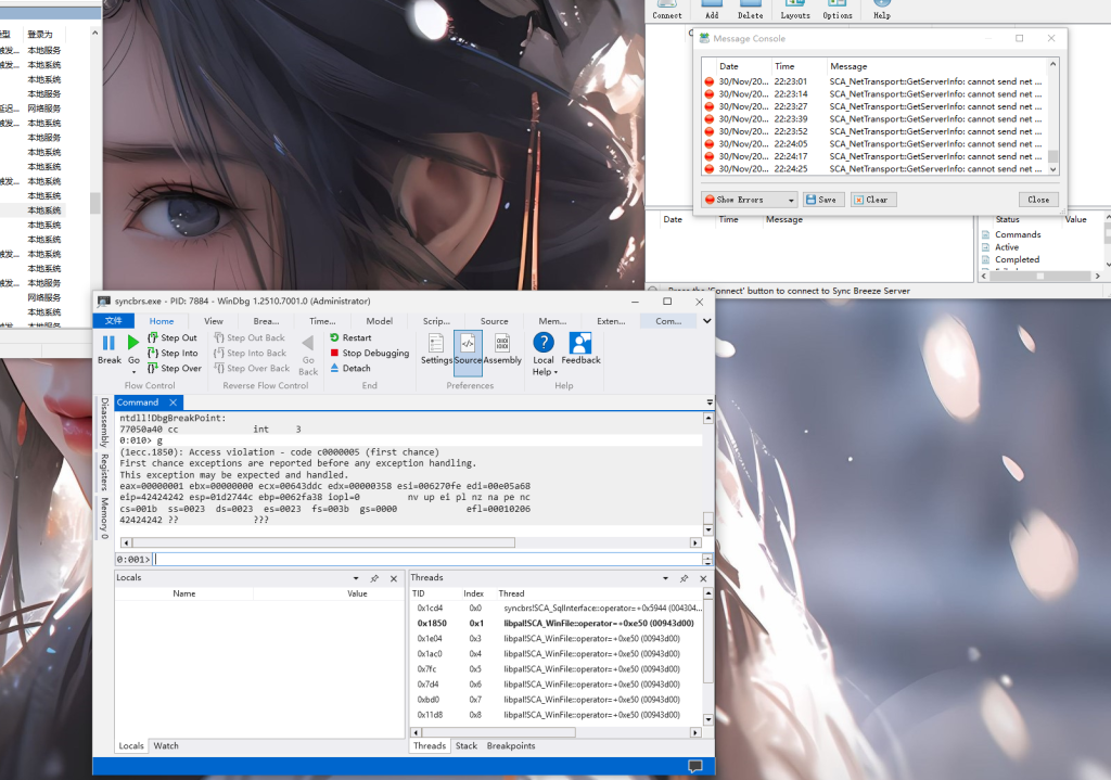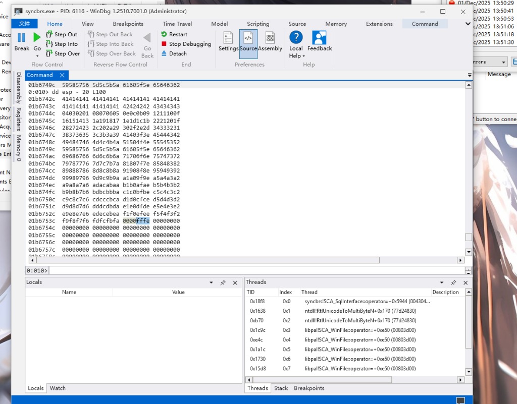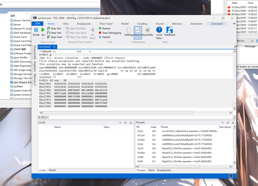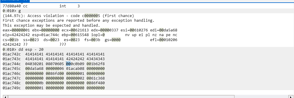 重新加载程序,执行脚本 eip=42424242 符合预期